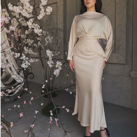 Robe de soirée élégante en satin Derniers vêtements pour femmes Dubaï Turquie Vêtements pour femmes Robe abaya musulmane Vente en gros Robe maxi trompette