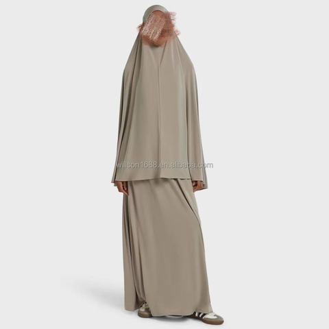 Premium Jersey Khimar + Jupe Deux Pièces Ensemble Femme Modeste Léger Dubaï Style Turc Moda Maxi Naturel Abaya Design